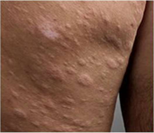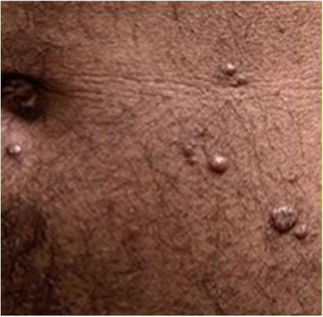 - Caroços (nódulos) no corpo, em alguns casos avermelhados e dolorosos.
